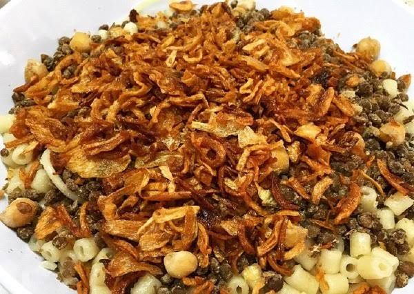 Very delicious recipe of brown lentil. The Egyptian Koshari, one of the most famous traditional Egyptian dishes. It sells very well in the resturants as it is cheap, affordable, nutrious and delicious. It is a mixture of brown lentil, pasta , rice (optional) and what gives it special flavor is the vinegar, the raw garlic and the chili powder all added to the tomato sauce. The vinegar, the garlic and the cili powder are great combination to give spicy and great taste. My husband doesn't like this dish very much, however he eats it with relish. He says that people invented it from the leftover food, so what! it is still a great and tasty dish! I love Koshari so much, I wish I could make it alot but I will end up eating most of it alone.